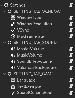 - Define your settings in the Godot editor, using the Scene editor and a Section -> Setting Key architecture
